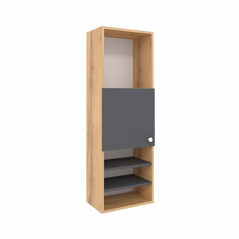 Навесной шкаф с открытыми и закрытыми нишами и полками - отличный вариант настенного хранения различных вещей. Отличие модуля состоит в том, что его можно подвесить как вертикально, так и горизонтально. В вертикальном положении навесной шкаф прекрасно сочетается с письменным столом.