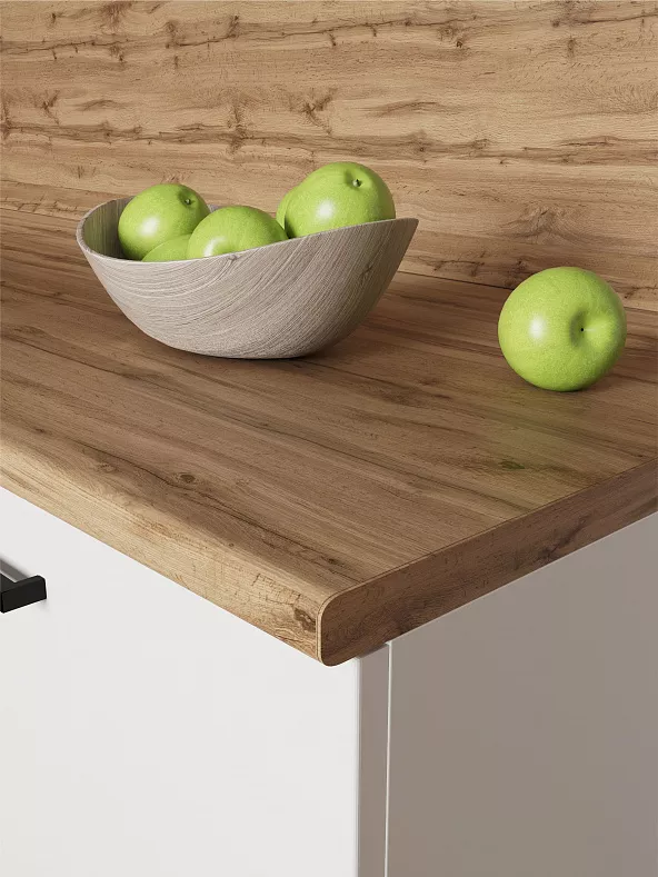 Столешницы цельные с пластиковым покрытием со скруглением по переднему краю (постформинг толщина 26/38 мм).