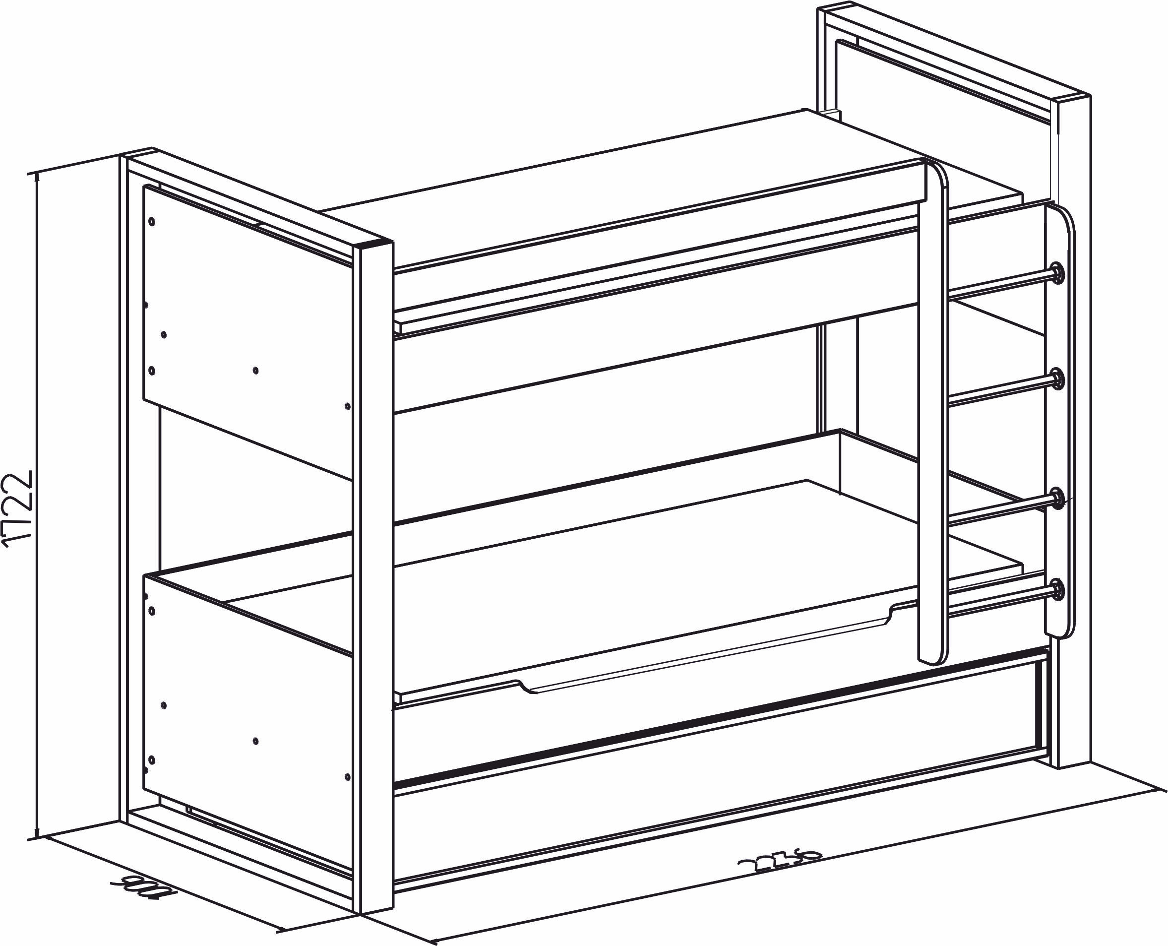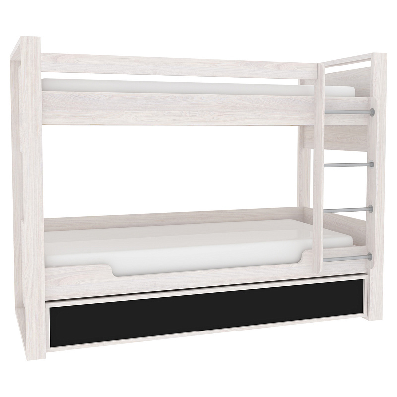 Отличным решением, позволяющим сэкономить место в небольшой квартире, будет двухъярусная кровать. В комплектации кровати - лестница с металлическими перекладинами диаметром 25 мм. Помимо спального места, на верхнем и нижнем ярусах кровати имеются дополнительные боковые ниши, которые помогут подростку держать под рукой необходимые перед сном вещи. Размер матраса для спального места: 190 х 90 см, высотой до 18 см. Хранить постельное белье будет удобно в выдвижном ящике на выкатных роликах. При необходимости можно организовать дополнительное спальное место другу, который останется ночевать. Для этого достаточно убрать разделитель и положить матрас. Размер матраса для дополнительного спального места: 190 х 80 см, высотой до 18 см. Ещё одно из преимуществ этой кровати - встроенное зарядное устройство. Используется для зарядки мобильных телефонов, планшетов. Устройство имеет компактные размеры, что позволяет разместить его прямо в нише кровати. Такая функциональная кровать не оставит равнодушными ни родителей, ни детей.