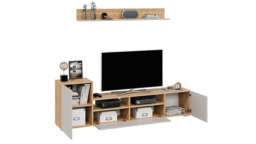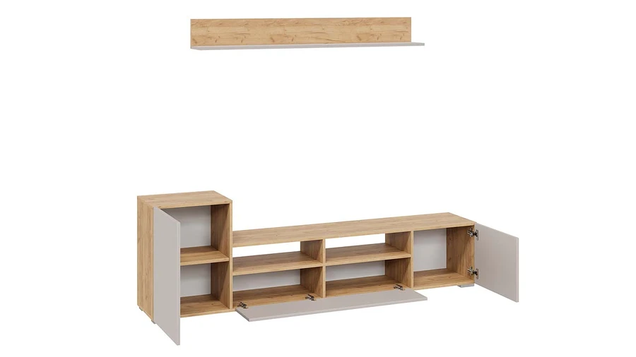 Модульность. Данная модель весьма вместительна, ведь при помощи разработанной комбинации закрытых напольных секций и навесной полки создается идеальная система для хранения различных предметов, которые используются в повседневной жизни. Она выполняет свои функции, а места занимает меньше. В результате драгоценное пространство останется нетронутым.