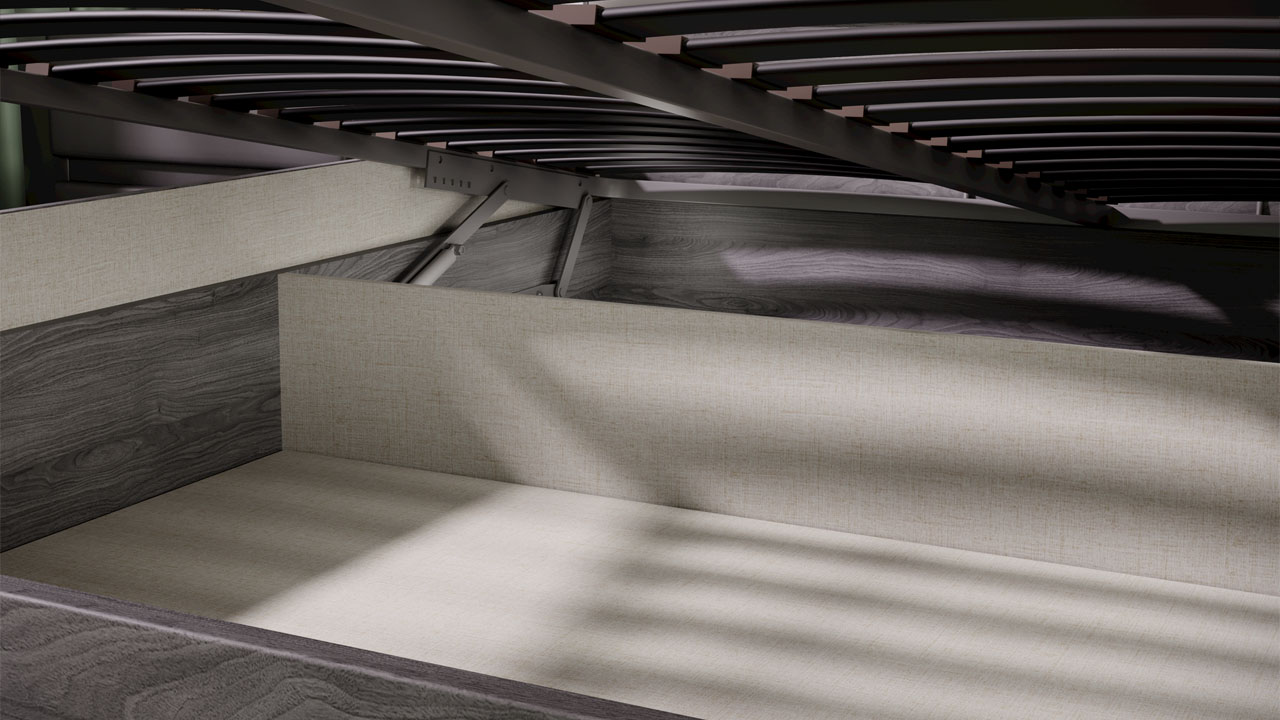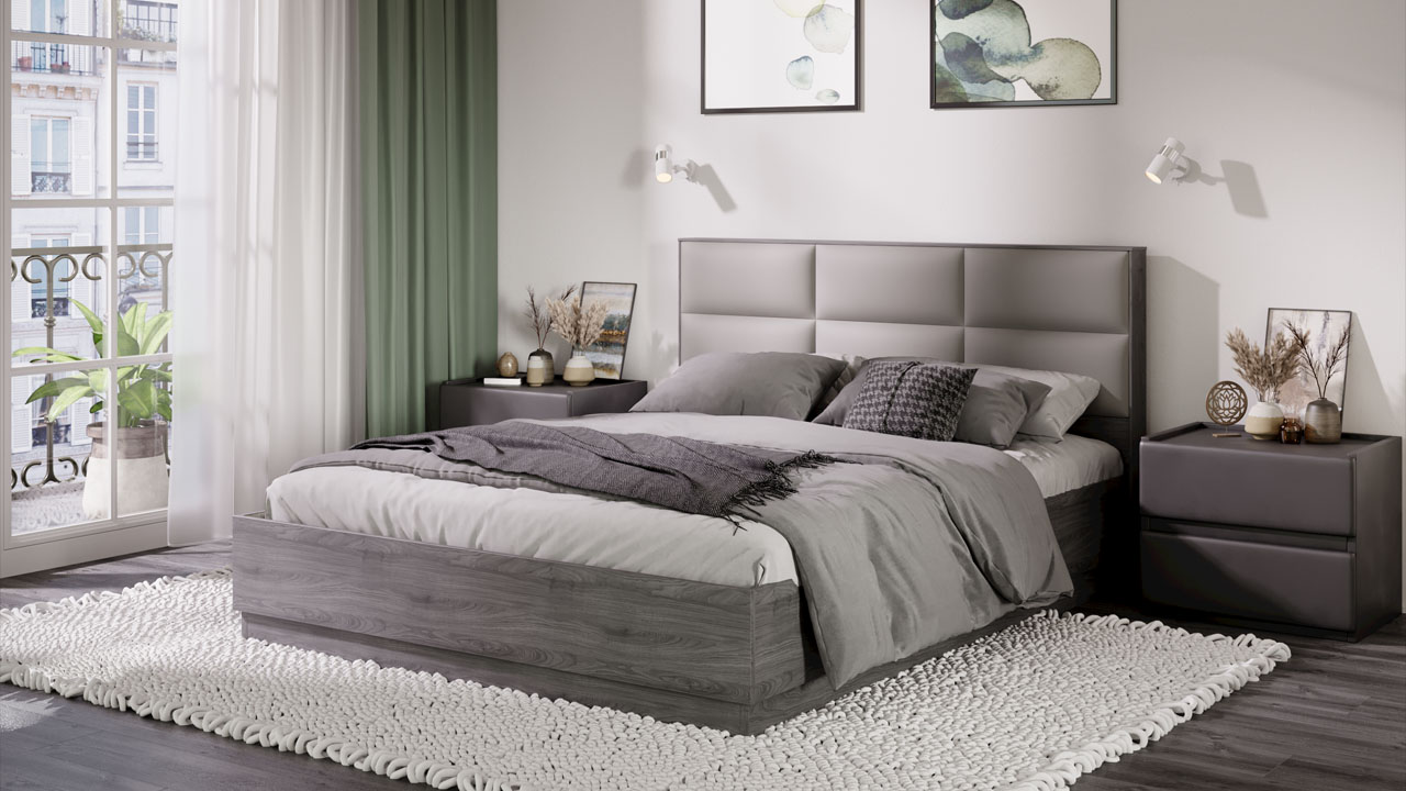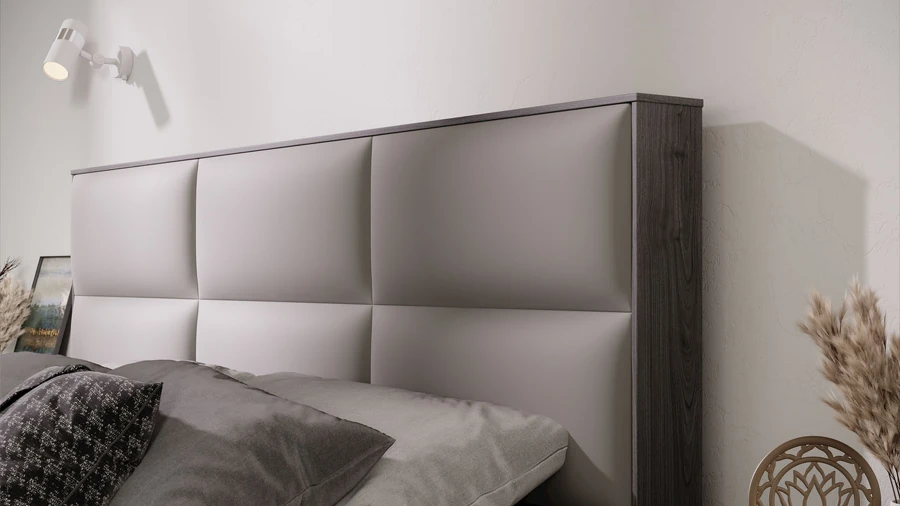Двуспальная кровать с ортопедическим основанием из коллекции "Либерти" оснащена подъемным механизмом, который позволяет использовать простраство под спальным местом для хранения вещей. Мягкое изголовье выполнено из велюра цвета "Грей".