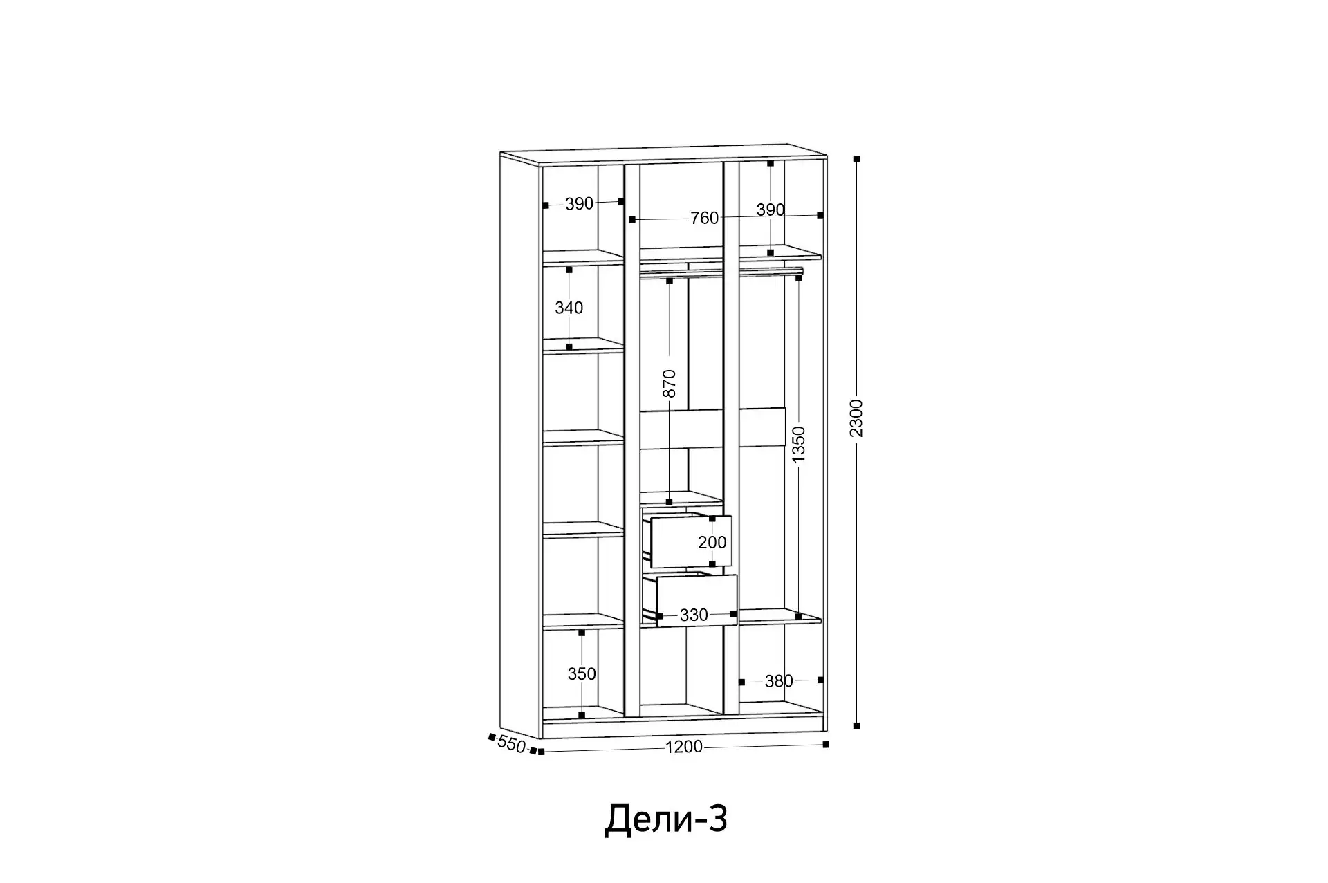 Ширина: 1200 мм | Глубина: 550 мм | Высота: 2300 мм