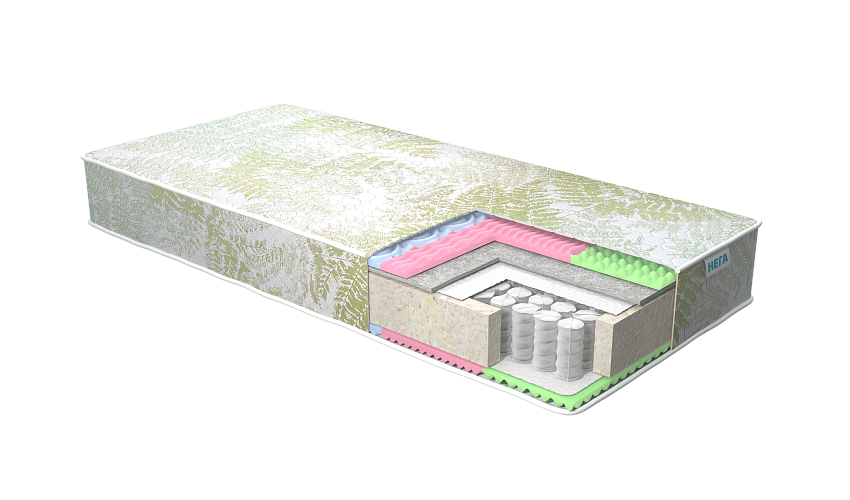 Ортопедический матрас Natura Тайга Плюс получил новое наполнение и стал разносторонним. С одной стороны матрас укомплектован 5-ти зональной пеной на основе 3Д резки и плотным слоем волтекса, что добавило одной стороне дополнительную жесткость и упругую эластичность. Волтекс - современный дышащий наполнитель, содержащий натуральные волокна шерсти, хлопка и льна, защищает слои матраса от повреждений пружинами во время эксплуатации матраса. Другая сторона матраса Тайга Плюс на основе плотной пены с массажным эффектом имеет жесткость ниже средней. 5-ти зональная поверхность бережно поддерживает все анатомические изгибы тела. Разносторонний матрас Тайга Плюс можно регулярно переворачивать, варьируя ощущения. Новый трикотаж с принтом "листья папоротника" обладает высокой плотностью, за счет особого плетения устойчив к зацепкам и катышкам. Компания-производитель оставляет за собой право вносить конструктивные изменения в модели,  а так же изменять вид ткани цельнозашивного чехла в целях улучшения внешнего вида, функционала и потребительских качеств изделия. По умолчанию матрас укомплектован независимым пружинным блоком TFK, (256 пружин на 1 кв метр или 500 пружин на одно спальное место). Блок TFK обеспечивает стандартный ортопедический эффект: матрас в целом повторяет контуры лежащего на нем человека, позвоночник остается ровным, что способствует восстановлению его естественных физиологических изгибов.