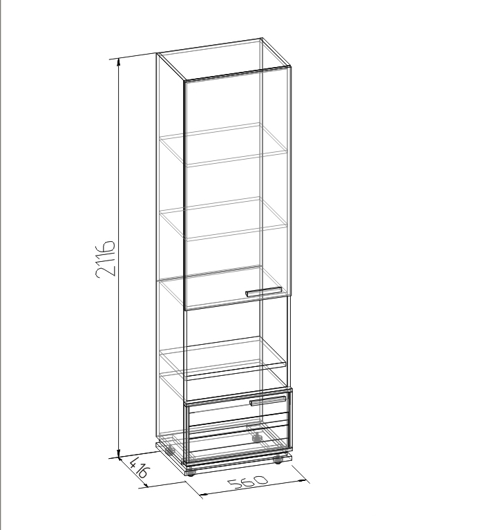 Благородный древесный оттенок шкафа, контрастирующий с черными ручками из массива дерева, подойдет к большинству цветовых решений – мебель будет легко комбинировать с другими предметами. Высокий шкаф МЦН удобен своей функциональностью и эргономичностью конструкции. На открытой полке разместите фотографии или элементы декора, а за глухими фасадами спрячьте документы и ценные вещи от посторонних глаз. Регулируемые опоры шкафа позволят компенсировать незначительные неровности пола.